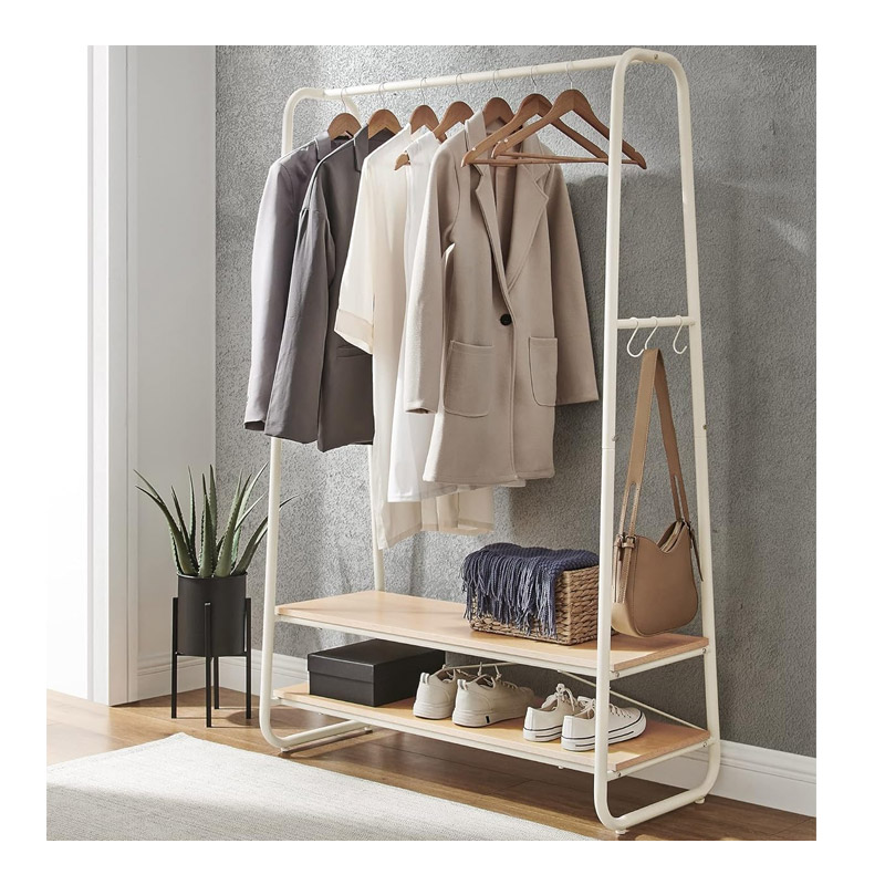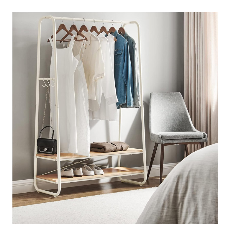 Μεταλλική Κρεμάστρα Ρούχων Δαπέδου με 2 Ξύλινα Ράφια 100 x 45 x 160 cm Χρώματος Λευκό VASAGLE RGR112W09