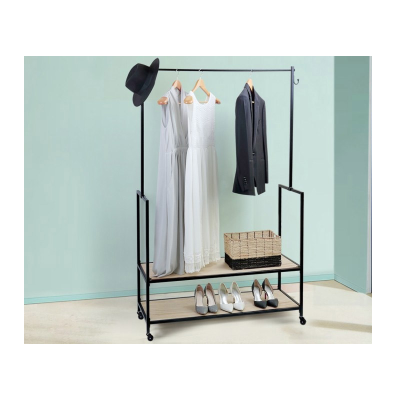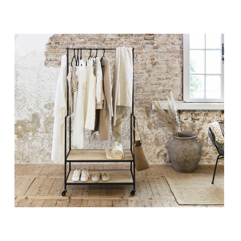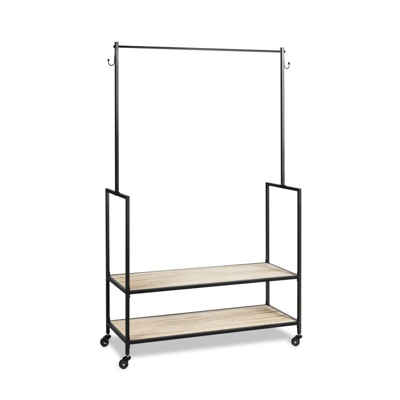Μεταλλική Κρεμάστρα Ρούχων Δαπέδου με 2 Ξύλινα Ράφια 84 x 42.5 x 176 cm με Ρόδες Montpellier Lifa-Living 8719743320833
