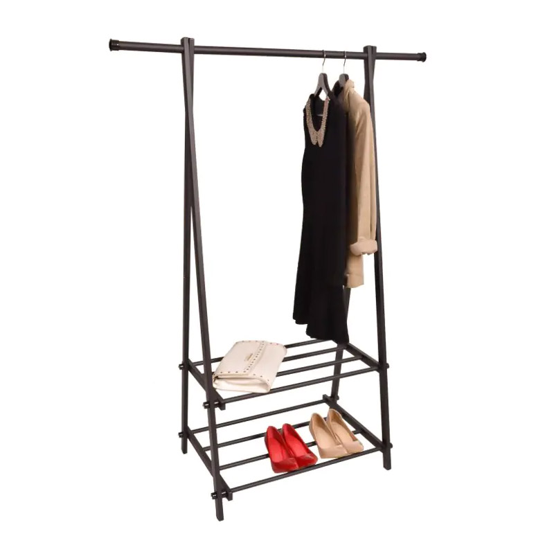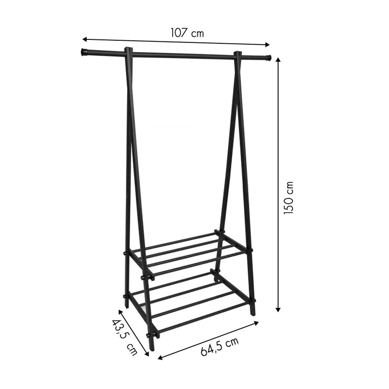 Μεταλλική Κρεμάστρα Ρούχων Δαπέδου με 2 Ράφια 107 x 43.5 x 150 cm ModernHome YLT-0311F-Black