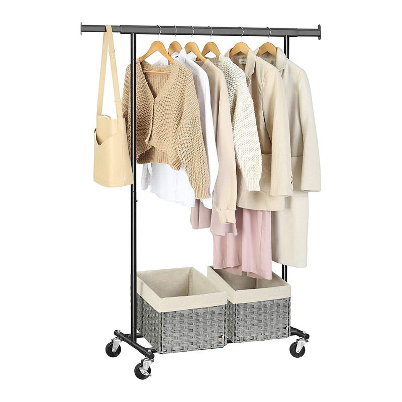 Μεταλλική Κρεμάστρα Ρούχων Δαπέδου Βαρέως Τύπου 92 - 132 x 45.4 x 160 cm με Ρόδες Χρώματος Μαύρο Songmics HSR13BKV1