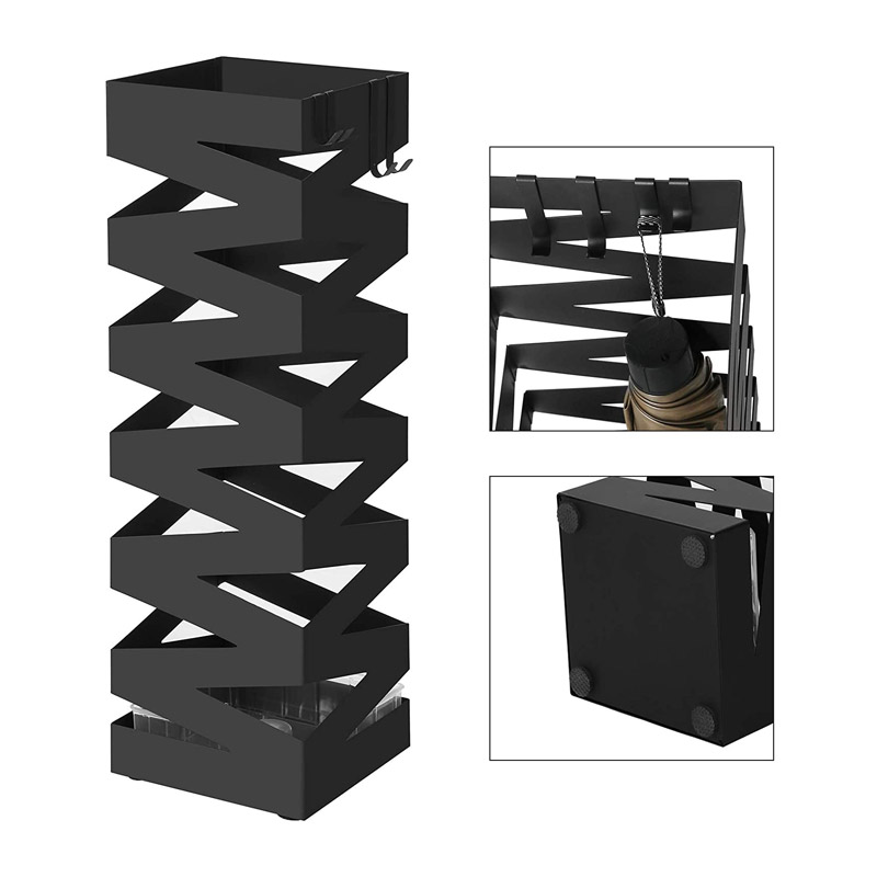 Η ομπρελοθήκη από την εταιρεία Songmics έχει κομψό σχεδιασμό και είναι κατασκευασμένη από ενισχυμένο μεταλλικό φύλλο, ανθεκτικό στη σκουριά και τη διάβρωση. Μπορείτε να τοποθετήσετε σε αυτήν αρκετές ομπρέλες χάρη στην μεγάλη χωρητικότητα της ενώ οι 4 γάντζοι που διαθέτει είναι ιδανικοί για την τοποθέτηση των μικρών, πτυσσόμενων ομπρελών, ώστε να μην τις χάνετε στο βάθος της ομπρελοθήκης.