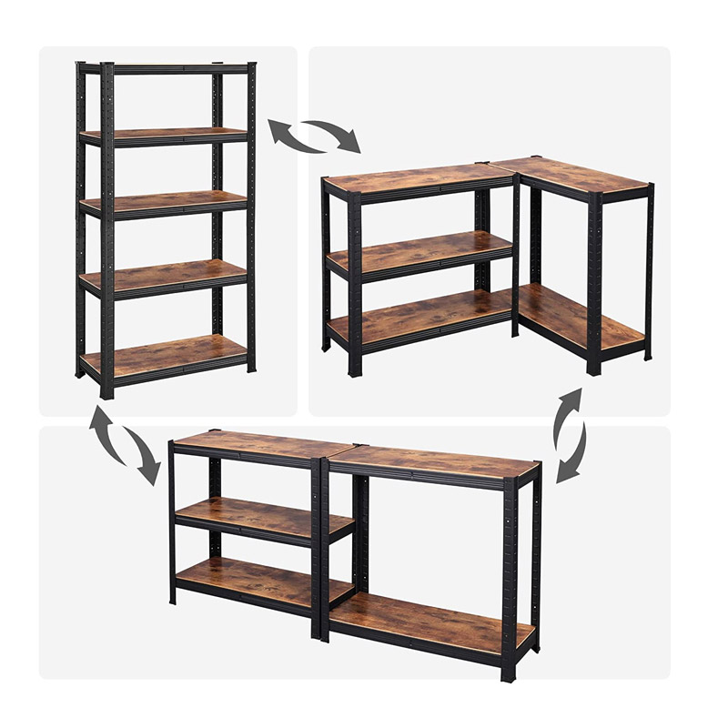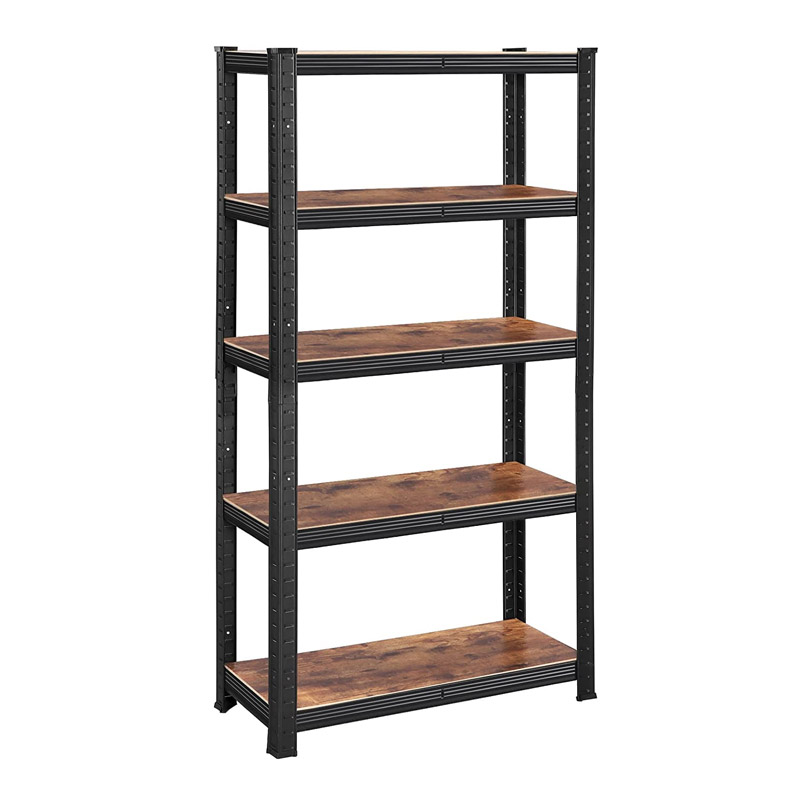 Η ραφιέρα, από την εταιρία Songmics, διαθέτει ατσάλινο πλαίσιο με πρόσθετες ράβδους ενίσχυσης και 5 ξύλινα ράφια από μοριοσανίδα. Κάθε ράφι μπορεί να συγκρατήσει έως και 130 Kg και είναι ρυθμιζόμενο σε ύψος. Η ραφιέρα, μπορεί να χωριστεί σε δύο χαμηλές, ανάλογα με τις ανάγκες σας. Το σύστημα στερέωσης στον τοίχο, σας βοηθά να παραμένει σταθερή και ασφαλή κατά τη χρήση.