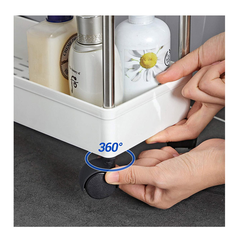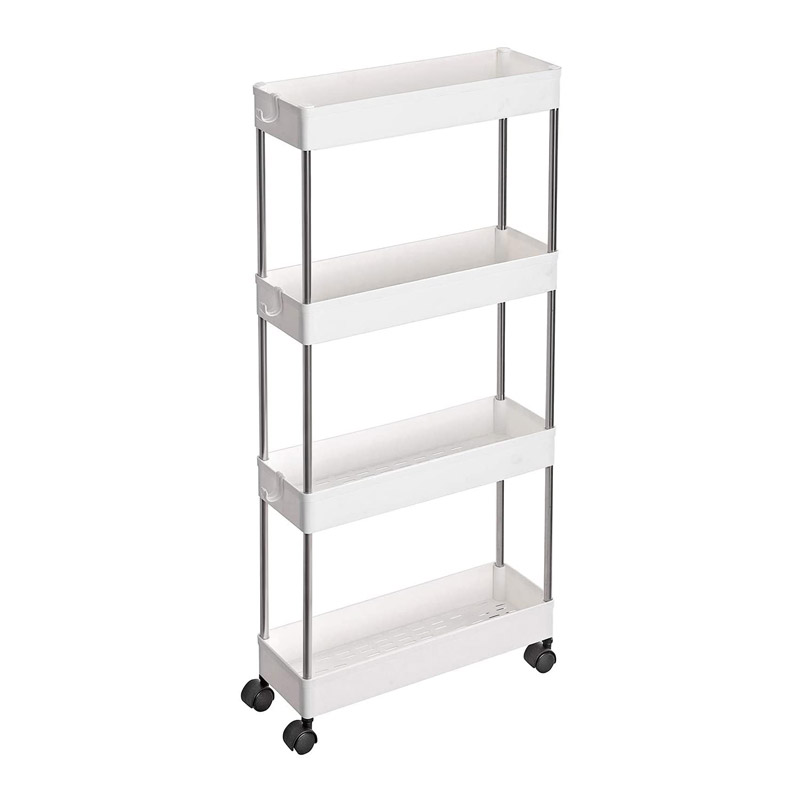 Το τρόλεϊ κουζίνας, από την εταιρία Songmics, είναι κατασκευασμένο από υψηλής ποιότητας μέταλλο, για μέγιστη αντοχή. Διαθέτει 4 ευρύχωρα ράφια από ανθεκτικό πλαστικό υλικό, με εγκοπές στο κάτω μέρος τους για επαρκή αερισμό, 4 περιστρεφόμενους τροχούς για εύκολη μετακίνηση και 3 άγκιστρα. Είναι ιδανικό για την κουζίνα αλλά και το σαλόνι ή το μπάνιο, όπου χρειάζεστε επιπλέον αποθηκευτικό χώρο.