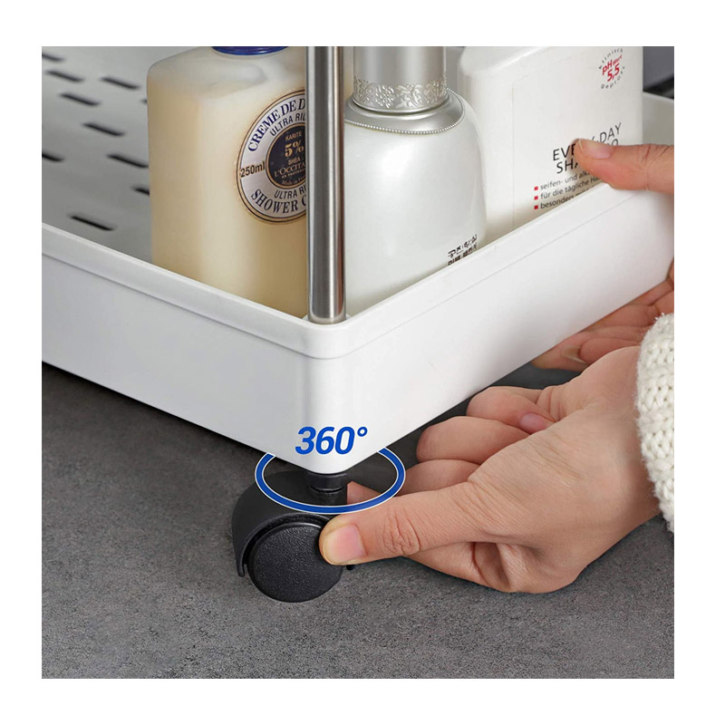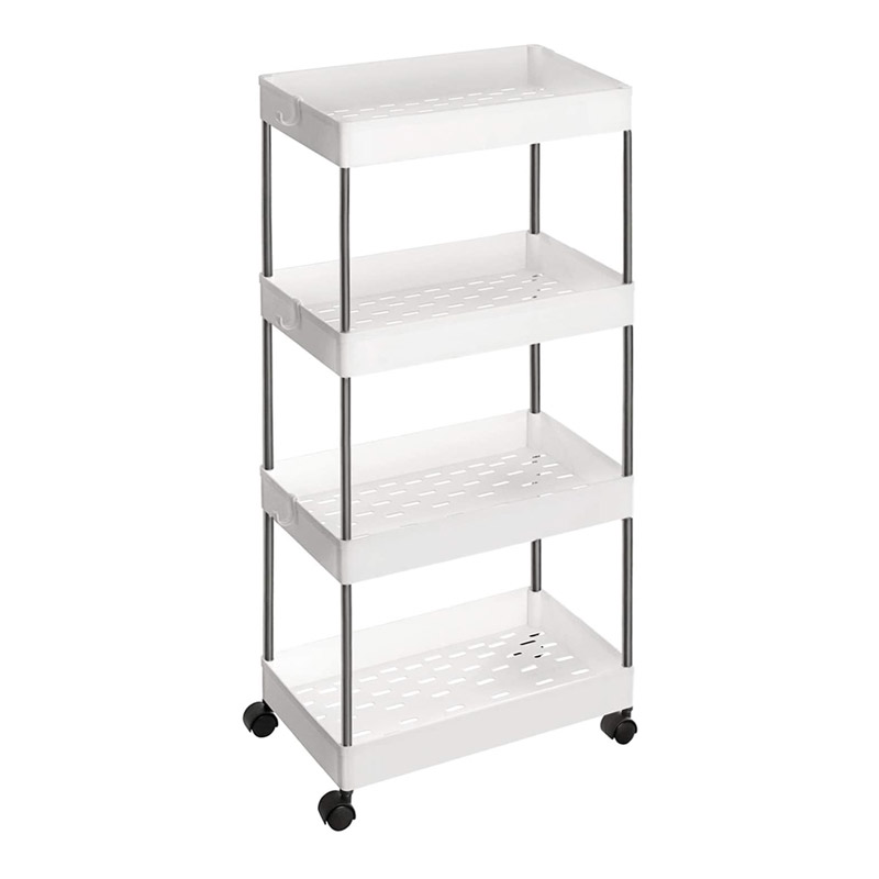Το τρόλεϊ κουζίνας, από την εταιρία Songmics, είναι κατασκευασμένο από υψηλής ποιότητας μέταλλο, για μέγιστη αντοχή. Διαθέτει 4 ευρύχωρα ράφια από ανθεκτικό πλαστικό υλικό, με εγκοπές στο κάτω μέρος τους για επαρκή αερισμό, 4 περιστρεφόμενους τροχούς για εύκολη μετακίνηση και 3 άγκιστρα. Είναι ιδανικό για την κουζίνα αλλά και το σαλόνι ή το μπάνιο, όπου χρειάζεστε επιπλέον αποθηκευτικό χώρο.
