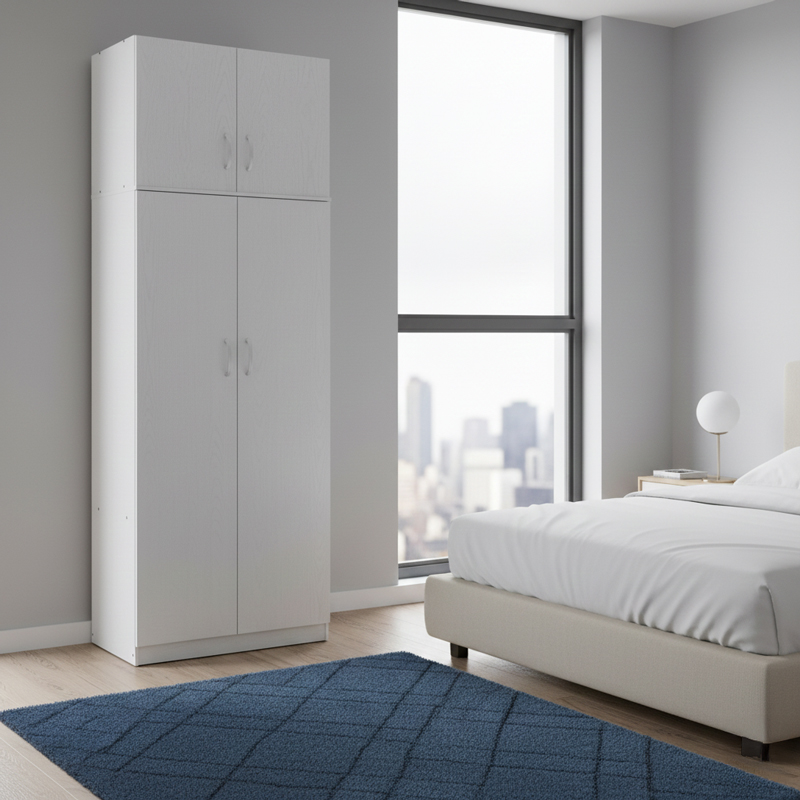 Ντουλάπα δίφυλλη και πατάρι Lego pakoworld σε λευκή απόχρωση 80x42x240εκ