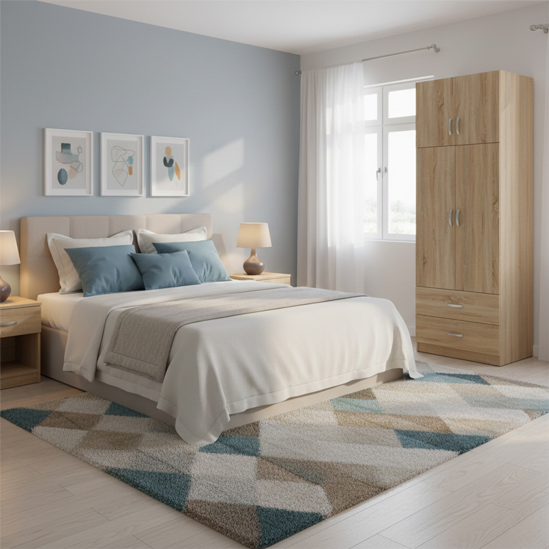 Ντουλάπα δίφυλλη με 2 συρτάρια και πατάρι Lego pakoworld σε oak απόχρωση 80x42x240εκ