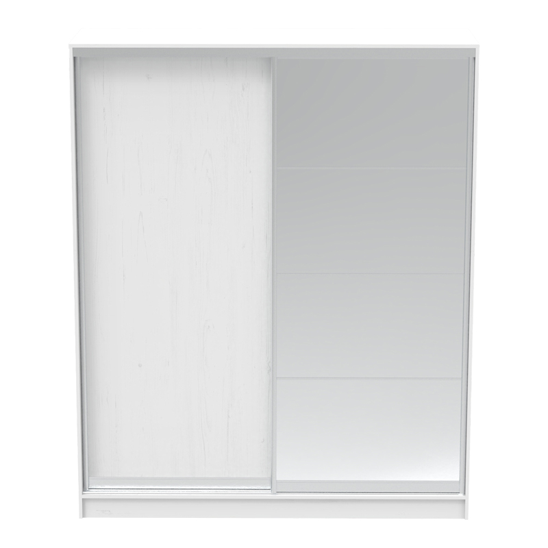Ντουλάπα δίφυλλη συρόμενη με καθρέφτη Aparador pakoworld σε λευκή απόχρωση 180x60x220εκ