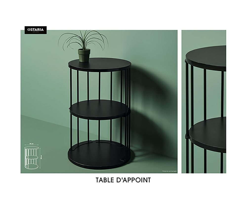 Ostaria Στρογγυλό Τραπέζι 3 Επιπέδων Μέταλλο Και Ξύλο Μαύρο -35474