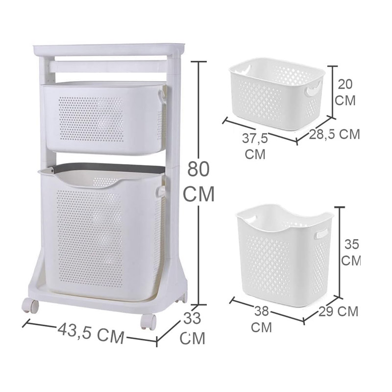 Πολυλειτουργικό Πλαστικό Τρόλεϊ με 2 Καλάθια 43.5 x 33 x 80 cm Χρώματος Λευκό Shally Dogan 02815371