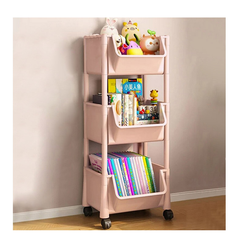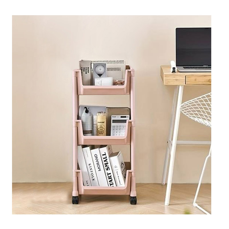 Πολυλειτουργικό Πλαστικό Τρόλεϊ με 3 Ράφια 25.5 x 26 x 76 cm Χρώματος Ροζ Shally Dogan 02840143