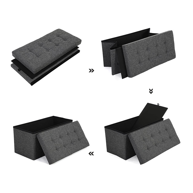Το σκαμπό, από την εταιρία Songmics, είναι πτυσσόμενο με εύκολη συναρμολόγηση και μπορείτε να αποθηκεύσετε διάφορα πράγματα στο εσωτερικό του. Με μοντέρνο σχεδιασμό και ιδιαίτερα ανθεκτικό, ταιριάζει ιδανικά στη διακόσμηση κάθε σπιτιού. Το σκαμπό είναι κατασκευασμένο από ξύλο MDF Ε1 βαθμού, καλυμμένο με λινό ύφασμα και μπορεί να αντέξει βάρος έως 300 Kg.
