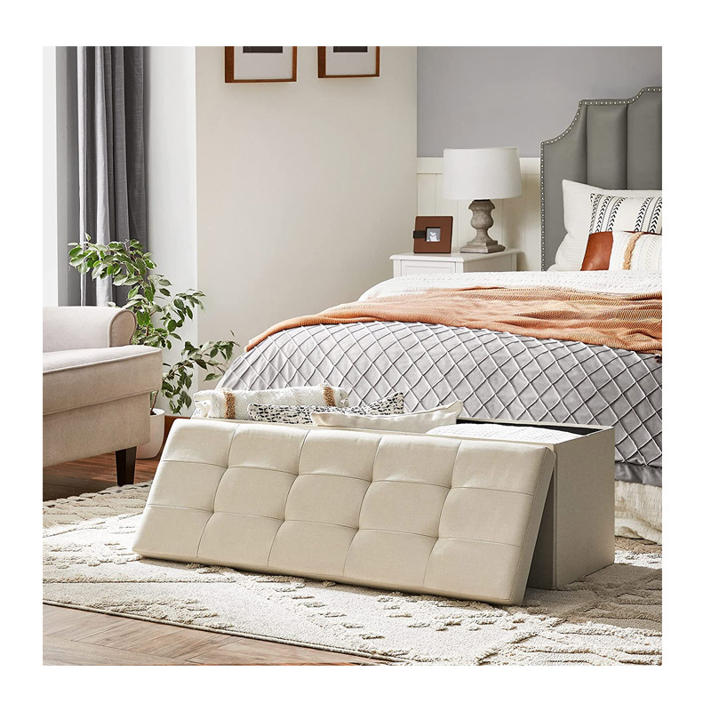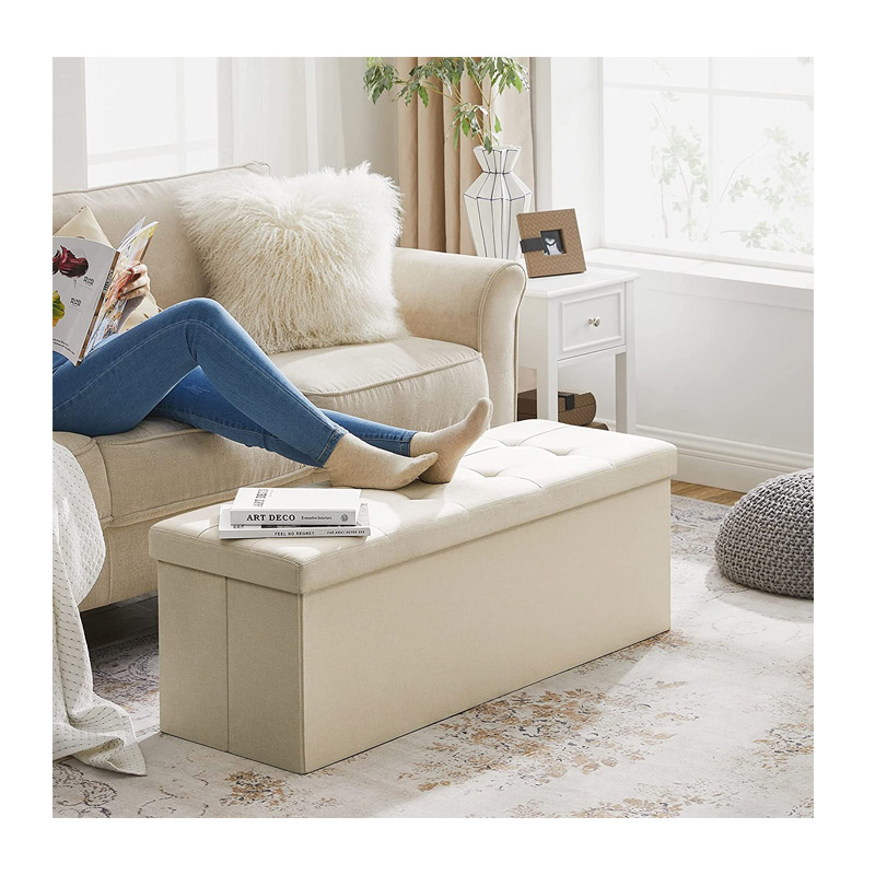 Πτυσσόμενο Σκαμπό με Αποθηκευτικό Χώρο Χρώματος Μπεζ 110 x 38 x 38 cm Songmics LSF77BE