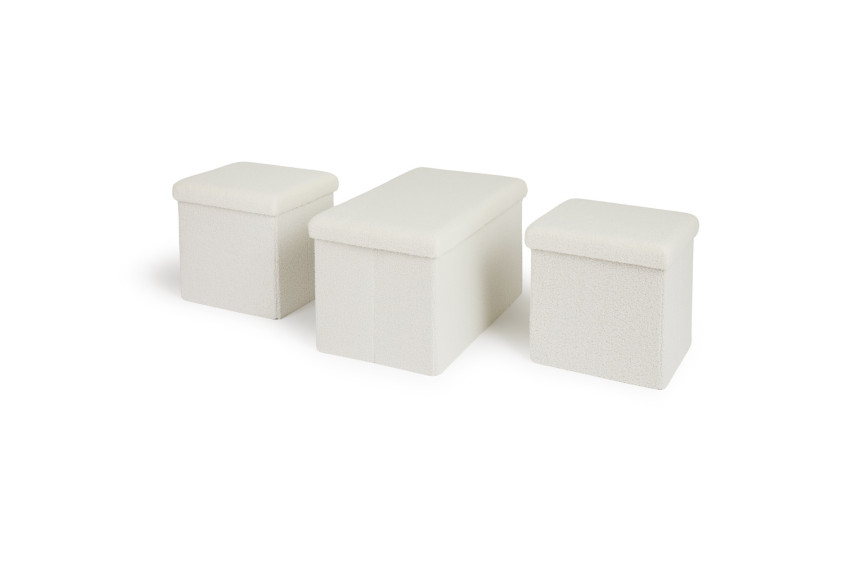 Μεταμορφώστε τον χώρο σας με το Σετ 3 Κουτιών Αποθήκευσης Teddy – ένας μοναδικός συνδυασμός λειτουργικότητας, άνεσης και διακόσμησης. Κατασκευασμένα από πολυεστέρα, MDF και πολυουρεθάνη, αυτά τα ανθεκτικά κουτιά δεν είναι απλώς αποθηκευτικές λύσεις, αλλά μπορούν να χρησιμοποιηθούν και ως βοηθητικά τραπεζάκια, υποπόδια ή επιπλέον καθίσματα.