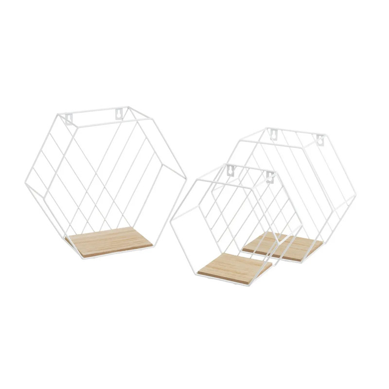 Σετ Επιτοίχια Μεταλλικά/Ξύλινα Εξαγωνικά Ράφια 31 x 13 x 28 cm Χρώματος Λευκό 3 τμχ Shally Dogan 02839908
