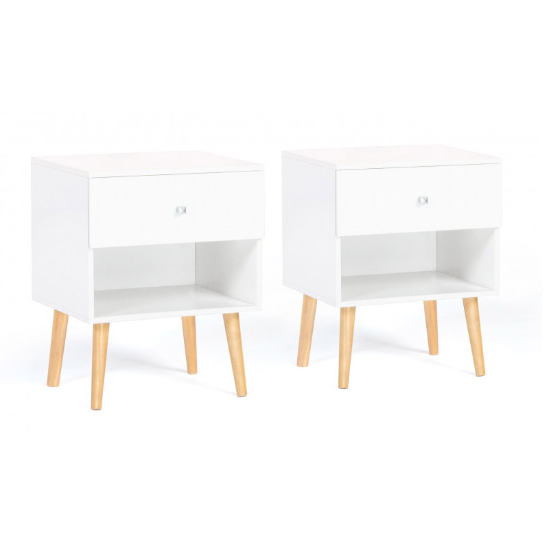 Το σετ, από την εταιρία Idomya, περιλαμβάνει 2 κομοδίνα κατασκευασμένα από μοριοσανίδα. Κάθε κομοδίνο διαθέτει ένα συρτάρι και ένα ανοιχτό ράφι.