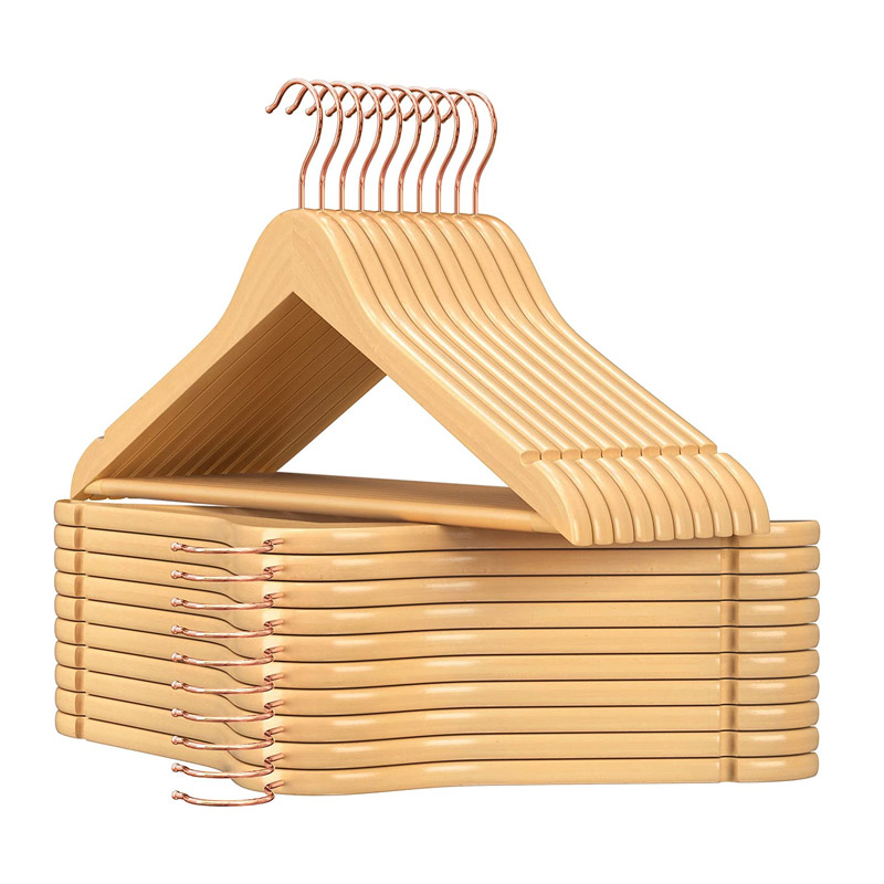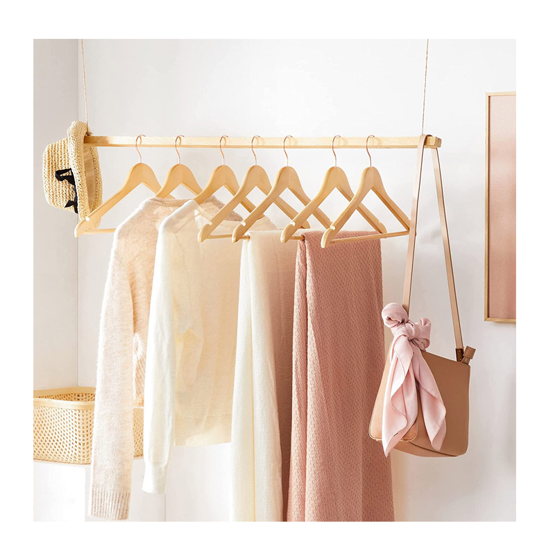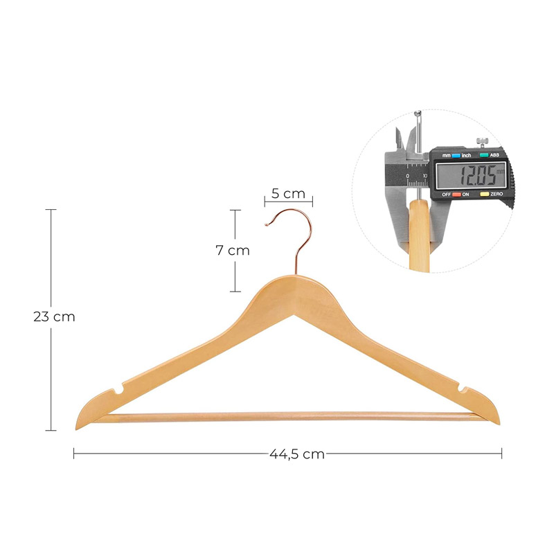 Το σετ, από την εταιρία Songmics, αποτελείται από 20 κρεμάστρες, κατασκευασμένες από υψηλής ποιότητας ξύλο σφενδάμου, με λεία και γυαλισμένη επιφάνεια, για την αποφυγή γρατζουνιών. Διαθέτουν μεταλλικό και περιστρεφόμενο γάντζο 360°, ώστε να μπορείτε εύκολα να αναποδογυρίζετε τα ρούχα σας χωρίς να χρειάζεται να τα βγάζετε. Οι εγκοπές σε σχήμα U και η αντιολισθητική λαστιχένια μπάρα παντελονιού, αποτρέπουν την ολίσθηση των ρούχων.