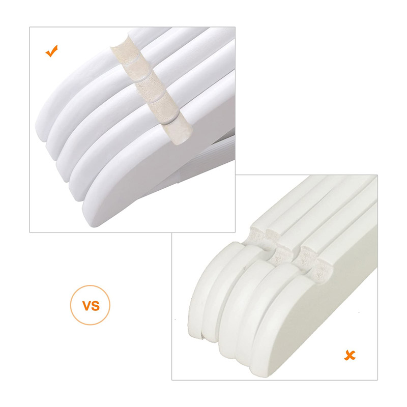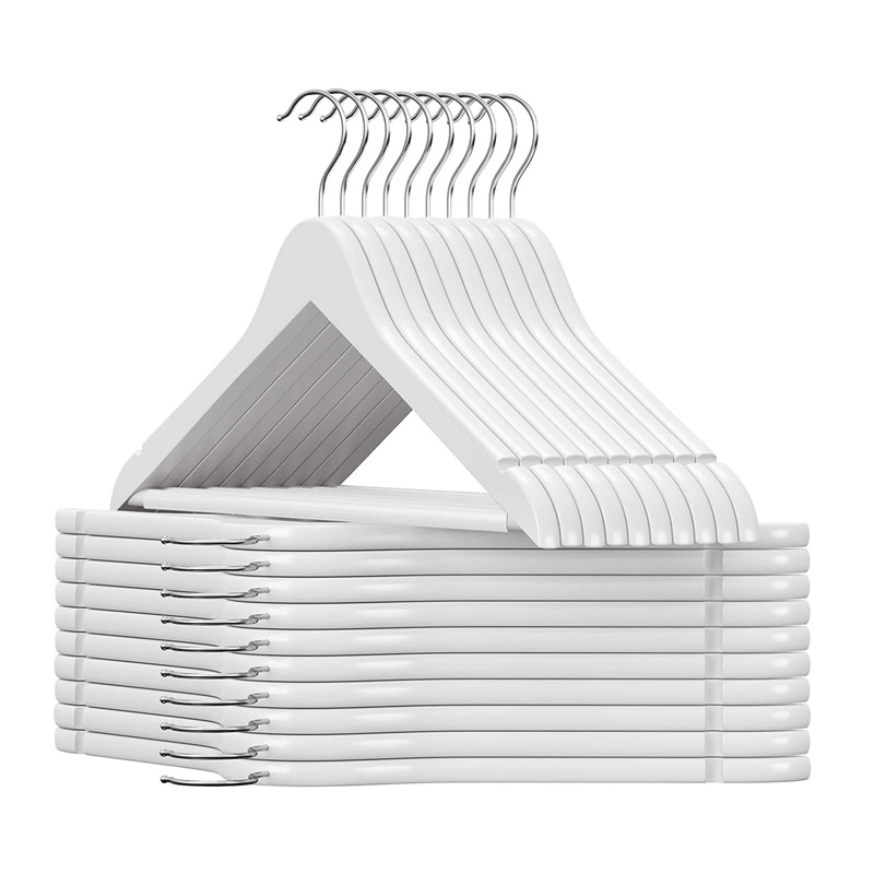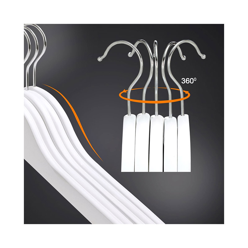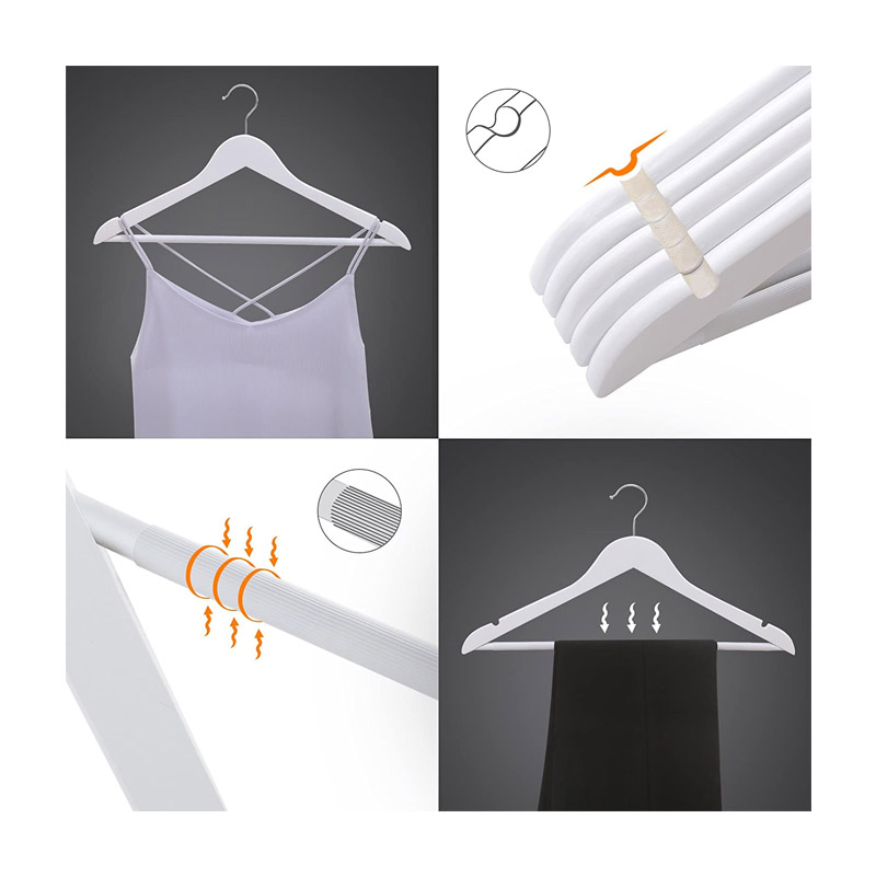 Το σετ, από την εταιρία Songmics, αποτελείται από 20 κρεμάστρες κατασκευασμένες από ξύλο σφενδάμου, υψηλής πυκνότητας με εξαιρετική ανθεκτικότητα. Διαθέτουν μεταλλικά άγκιστρα, ανθεκτικά στη σκουριά και στη διάβρωση, τα οποία περιστρέφονται κατά 360°, για μεγαλύτερη ευκολία. Επιπρόσθετα, έχουν πλαϊνές εγκοπές για να κρεμάσετε φούστες, χωρίς να ανησυχείτε για την ολίσθηση.