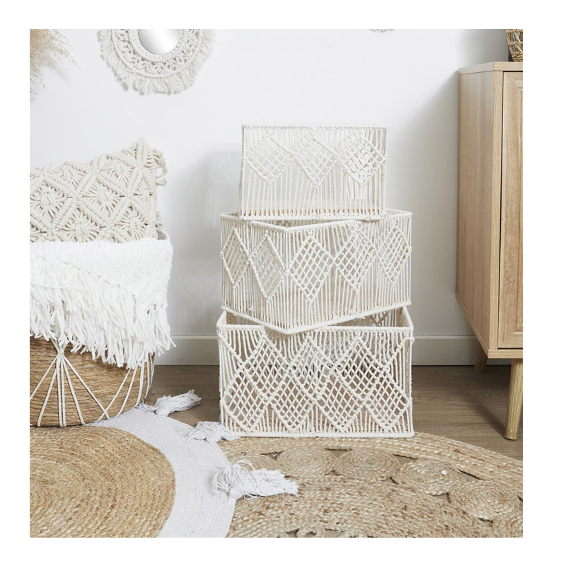 Το σετ, από την εταιρία Home Deco Factory, αποτελείται από 3 καλάθια αποθήκευσης, σε ορθογώνιο σχήμα διαφορετικών διαστάσεων. Τα καλάθια προσφέρουν μια ιδανική λύση αποθήκευσης για να οργανώσετε το χώρο σας με στυλ. Ιδανικά για να έχετε οργανωμένα μικροαντικείμενα, τα περιοδικά και ότι άλλο φανταστείτε, δίνοντας παράλληλα μια φρέσκια ανάσα στο χώρο σας. Επίσης, μπορείτε να τοποθετήσετε στο εσωτερικό τους φυτά, δίνοντας μια Boho νότα στο χώρο σας.