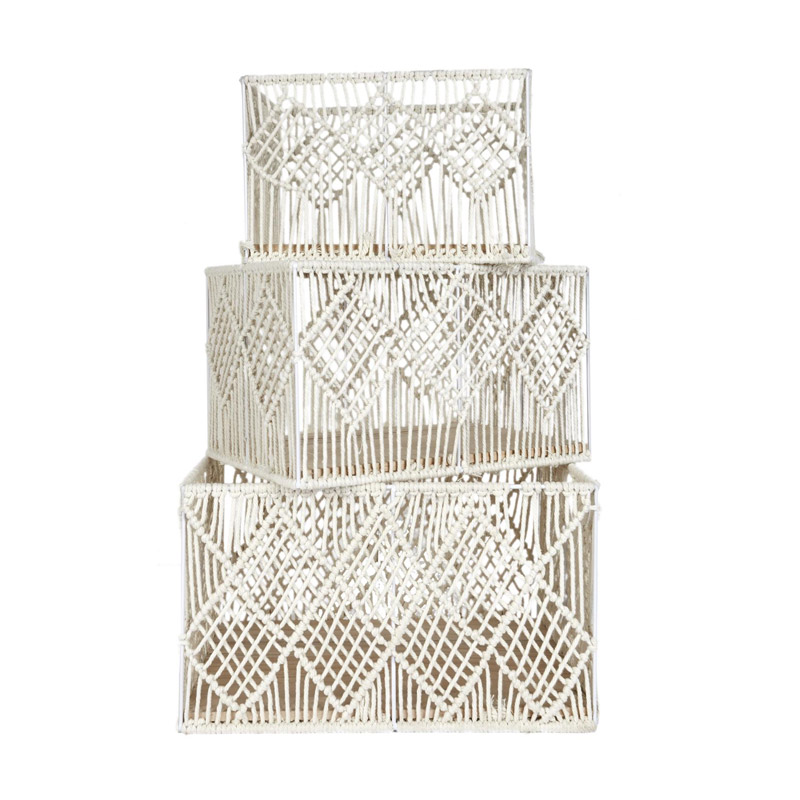 Σετ Μεταλλικά/Βαμβακερά Ορθογώνια Καλάθια Αποθήκευσης Nesting Boho 37 x 27 x 21 cm 3 τμχ Home Deco Factory RG0022