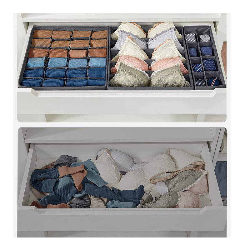 Το σετ, από την εταιρία Songmics, αποτελείται από 8 κουτιά διαφορετικών διαστάσεων, για να έχετε πάντα οργανωμένα τα εσώρουχά σας, τις κάλτσες ή και άλλα μικρά ενδύματα. Πιο συγκεκριμένα, περιλαμβάνει 2 κουτιά 5 θέσεων (32 x 32 x 10 cm) για σουτιέν, 2 κουτιά 6 θέσεων (32 x 16 x 10 cm) για κασκόλ, 2 κουτιά 8 θέσεων (32 x 16 x 10 cm) για γραβάτες και 2 κουτιά 24 θέσεων (32 x 32 x 10 cm) για κάλτσες ή άλλα αξεσουάρ.