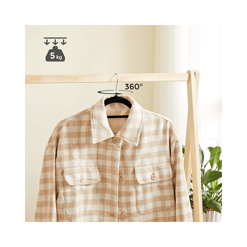 Το σετ, από την εταιρία Songmics, αποτελείται από 50 βελούδινες κρεμάστρες, ώστε να αποφεύγεται η ολίσθηση των ρούχων. Διαθέτουν μεταλλικά άγκιστρα, ανθεκτικά στη σκουριά και στη διάβρωση, τα οποία περιστρέφονται κατά 360°, για μεγαλύτερη ευκολία.