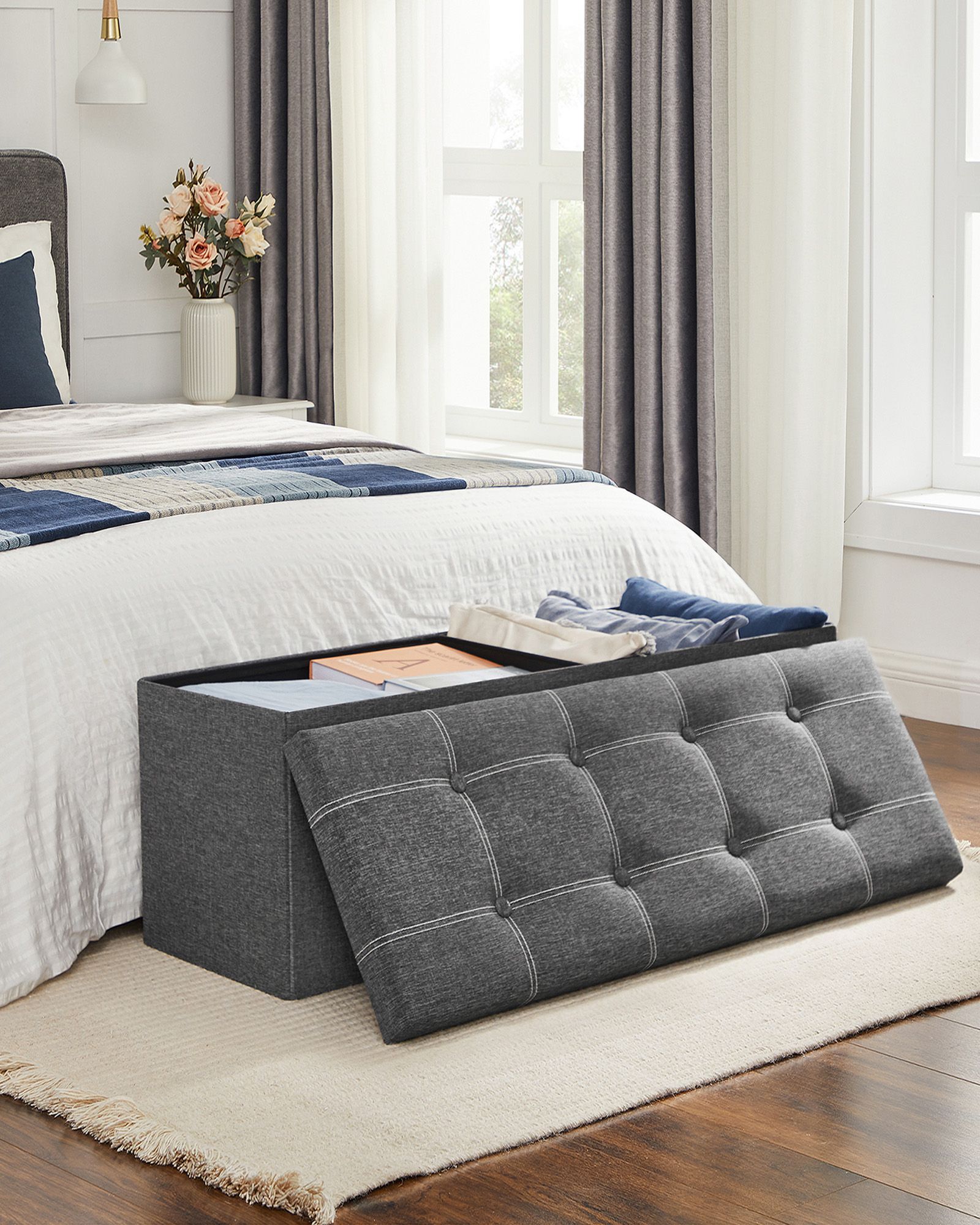 SONGMICS Πολυλειτουργικό Αποθηκευτικό Πουφ 110x38x38 εκ, Ανοιχτό Γκρι LSF077G04