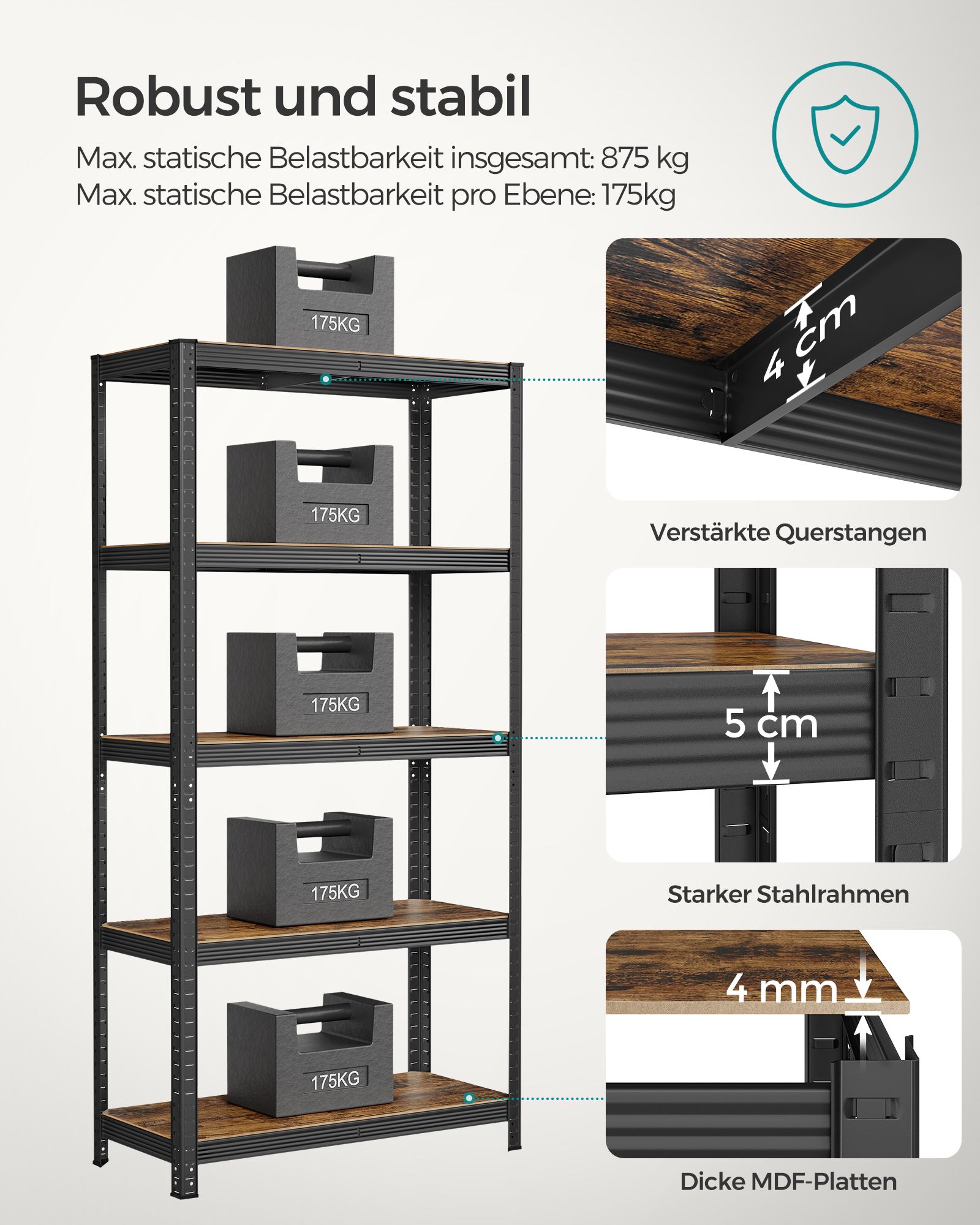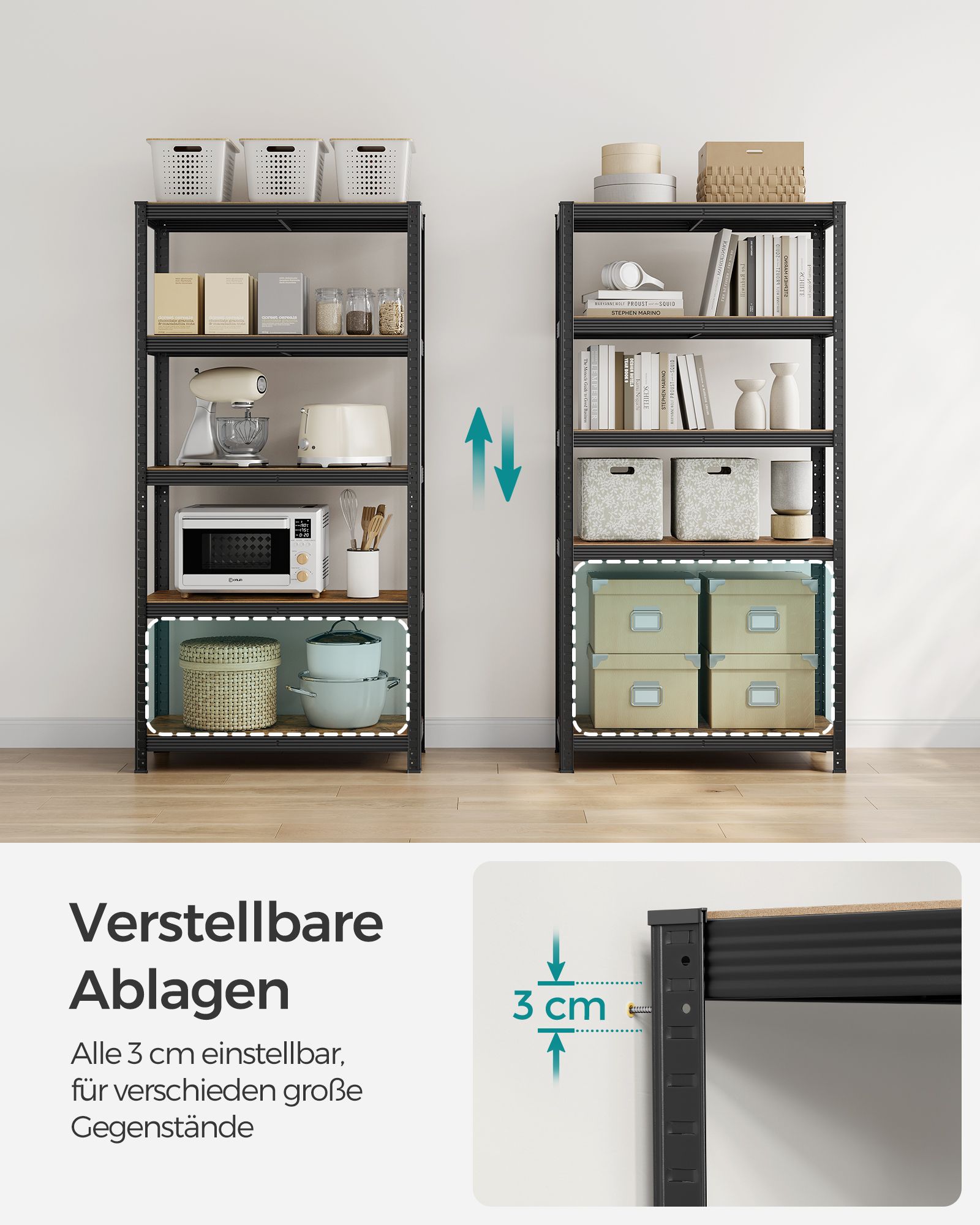 SONGMICS Βιομηχανική Ραφιέρα Βαρέως Τύπου, Ρουστίκ Καφέ & Μαύρο, 40 x 90 x 180 εκ., GLR040B11