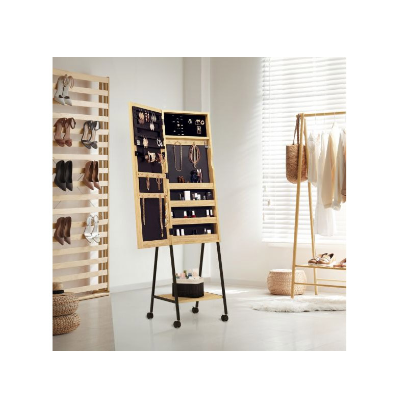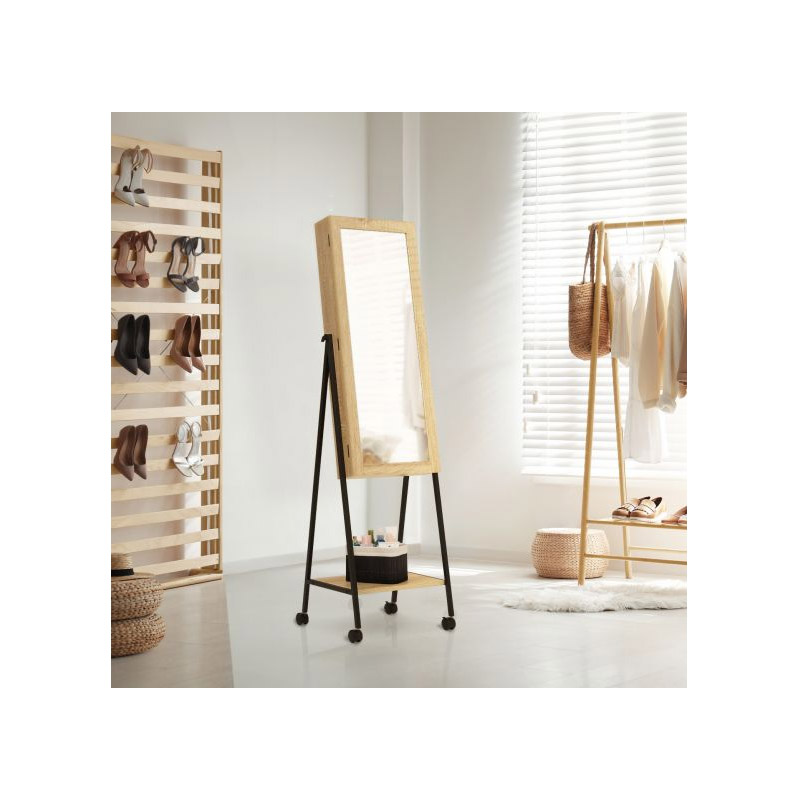 Τροχήλατη Μεταλλική/Ξύλινη Κοσμηματοθήκη - Μπιζουτιέρα με Καθρέπτη 40.5 x 37 x 143 cm Memphis Idomya 30130358
