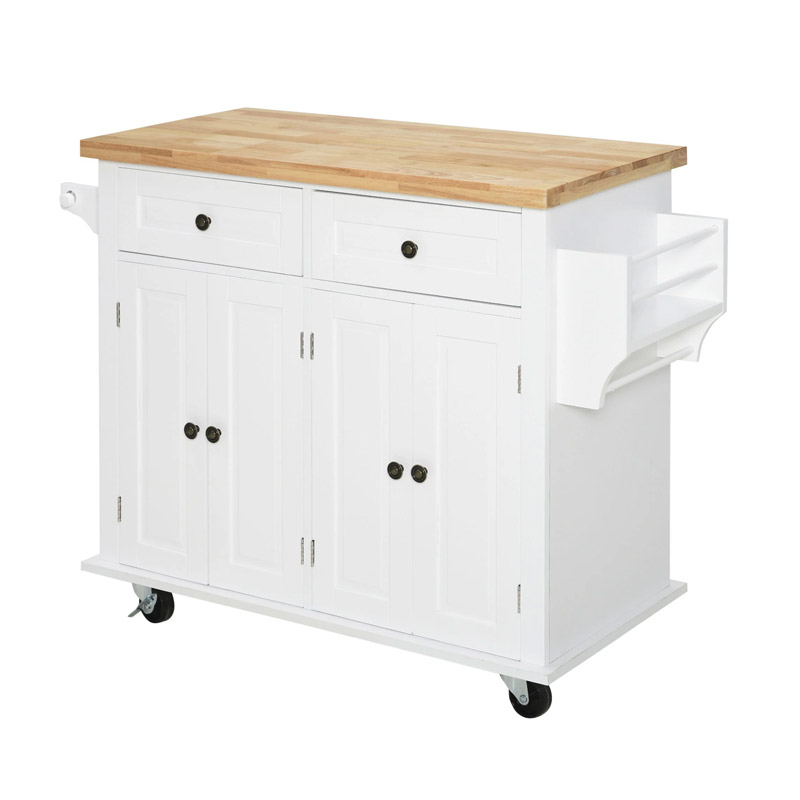 Τροχήλατο Έπιπλο Κουζίνας με 2 Ντουλάπια και 2 Συρτάρια 111 x 44.5 x 82.5 cm HOMCOM 801-161WT