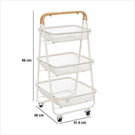 Αποκτήστε πρακτικότητα και κομψότητα με το Mayaj, ένα τρόλεϊ τριών επιπέδων που συνδυάζει ανθεκτικό μέταλλο με κομψό μαύρο ξύλο. Ιδανικό για αποθήκευση και μεταφορά αντικειμένων σε κουζίνα, μπάνιο, γραφείο ή σαλόνι, προσφέροντας μέγιστη λειτουργικότητα με στυλ. Οι ρόδες του επιτρέπουν εύκολη μετακίνηση, ενώ ο σταθερός σχεδιασμός εξασφαλίζει αντοχή και αξιοπιστία.