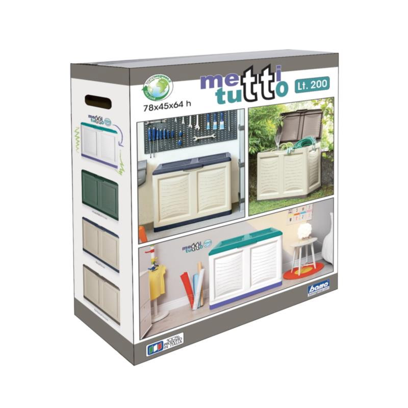 Το μπαούλο εξωτερικού χώρου, από την εταιρία Bama, είναι κατασκευασμένο από ανθεκτικό πλαστικό. Το μπαούλο έχει χωρητικότητα 200 Lt και είναι εξοπλισμένο με πλαϊνές λαβές για εύκολη μετακίνηση.
