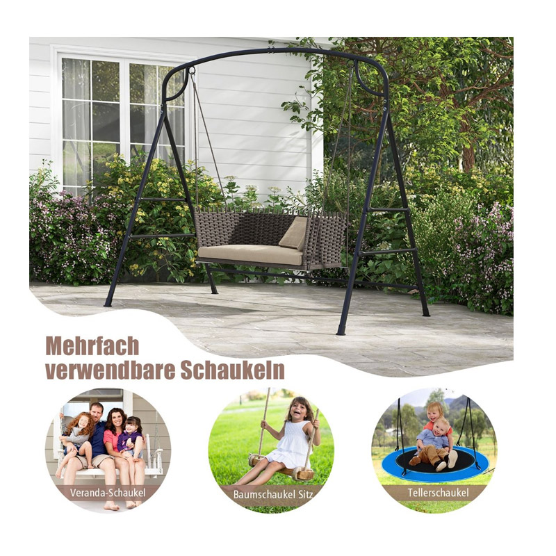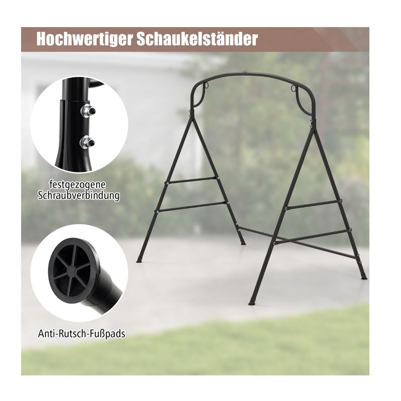 Ο σκελετός κούνιας, από την εταιρία Costway, είναι κατασκευασμένος από ισχυρό και ανθεκτικό στη σκουριά μέταλλο, εξασφαλίζοντας ανθεκτικότητα και μεγάλη διάρκεια ζωής. Η σταθερή δομή σε σχήμα Α είναι ενισχυμένη με διπλές ράβδους και διαθέτει σχέδιο 2 δακτυλίων και ασφαλή βιδωτή σύνδεση, η οποία εξασφαλίζει εξαιρετική σταθερότητα. Μπορεί να φιλοξενήσει διάφορες κούνιες, συμπεριλαμβανομένων κούνιες βεράντας και καθίσματα με κούνια δέντρων, καθιστώντας το μια τέλεια προσθήκη σε κάθε εξωτερικό χώρο.
