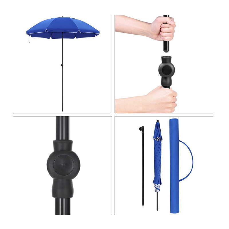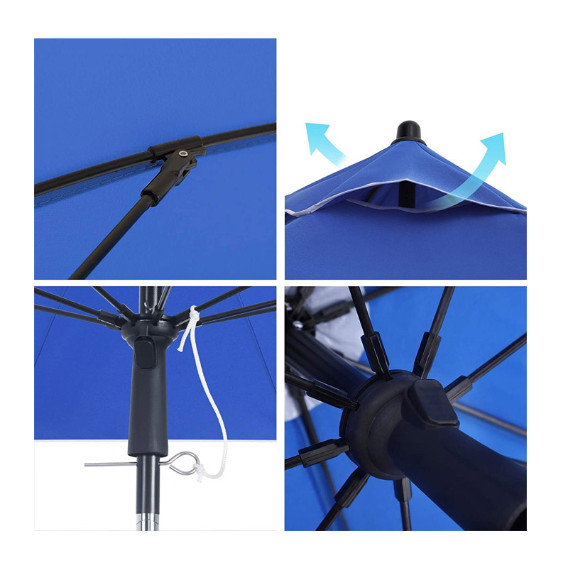 Η ομπρέλα, είναι εξοπλισμένη με μηχανισμό κλίσης, ο οποίος σας επιτρέπει να κάνετε γωνία στον θόλο για να αποκτήσετε τη σκιά που θέλετε. Συνοδεύεται από πρακτική τσάντα μεταφοράς και αποθήκευσης.