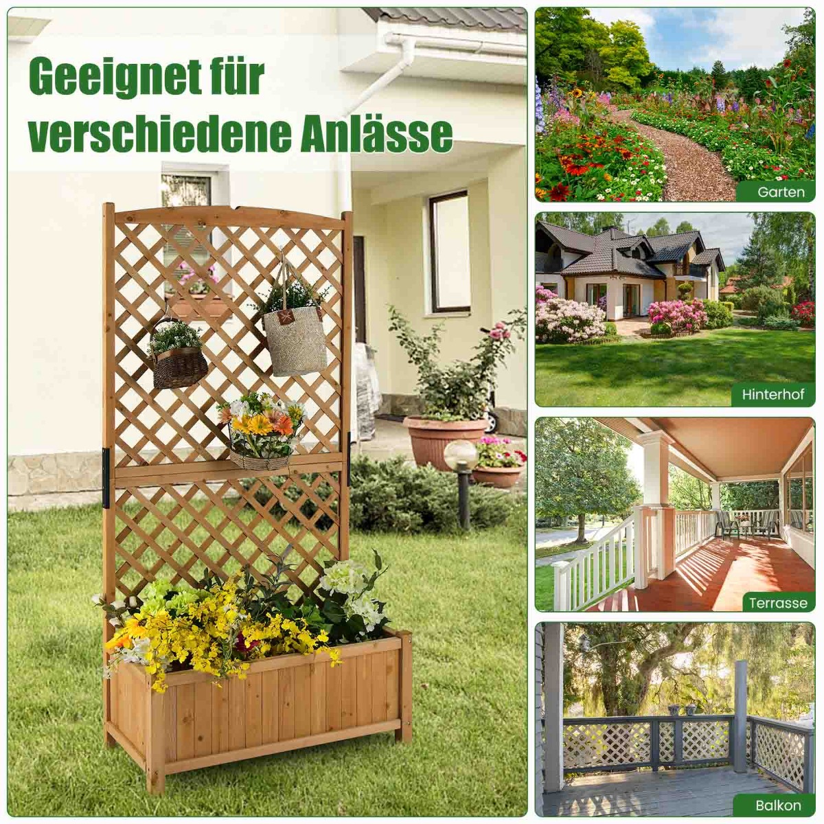 Δώστε στο χώρο σας μια πινελιά κομψής γοητείας! Το υπερυψωμένο κρεβάτι μας μετρά 90 x 44,5 x 180 cm (Μ x Π x Υ) και προσφέρει μεγάλη καλλιεργητική επιφάνεια για διάφορα φυτά. Το πλέγμα είναι κατάλληλο για αναρριχώμενα φυτά που αναπτύσσονται σε ύψος και μπορείτε επίσης να το διακοσμήσετε με διακοσμητικά ή καλάθια. Ο μεγάλος φυτευτής είναι αρκετά βαθύς για να καλλιεργήσετε λουλούδια, βότανα, λαχανικά, φρούτα και άλλα, καλύπτοντας τις διάφορες ανάγκες σας. Χάρη στον έξυπνο σχεδιασμό αποστράγγισης, δεν χρειάζεται να ανησυχείτε για στάσιμα νερά ή ξηρασία. Επιπλέον, το φυτευτήριο είναι κατασκευασμένο από 100% φυσικό ξύλο έλατου, ανθεκτικό στη παραμόρφωση, στις καιρικές συνθήκες και ανθεκτικό, καθιστώντας αυτό το κρεβάτι κήπου την τέλεια επιλογή για κάθε κηπουρική σε εσωτερικούς και εξωτερικούς χώρους. Μπορείτε να το τοποθετήσετε στον κήπο, στη βεράντα, στο μπαλκόνι και να δώσετε στο χώρο σας μια πινελιά φύσης και ζωντάνιας.