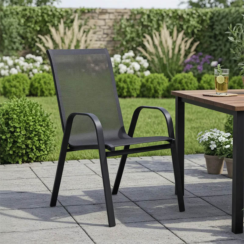 - Σταθερός σκελετός από μέταλλο με αντοχή στην καταπόνηση και στη φθορά. Κυρίως σώμα καρέκλας από εξαιρετικής ποιότητας textilene. Το textilene είναι ύφασμα μεγάλης αντοχής στην ηλιακή ακτινοβολία και την υγρασία ενώ παράλληλα αφήνει το δέρμα να "αναπνέει" δημιουργώντας έτσι άνεση στο κάθισμα.