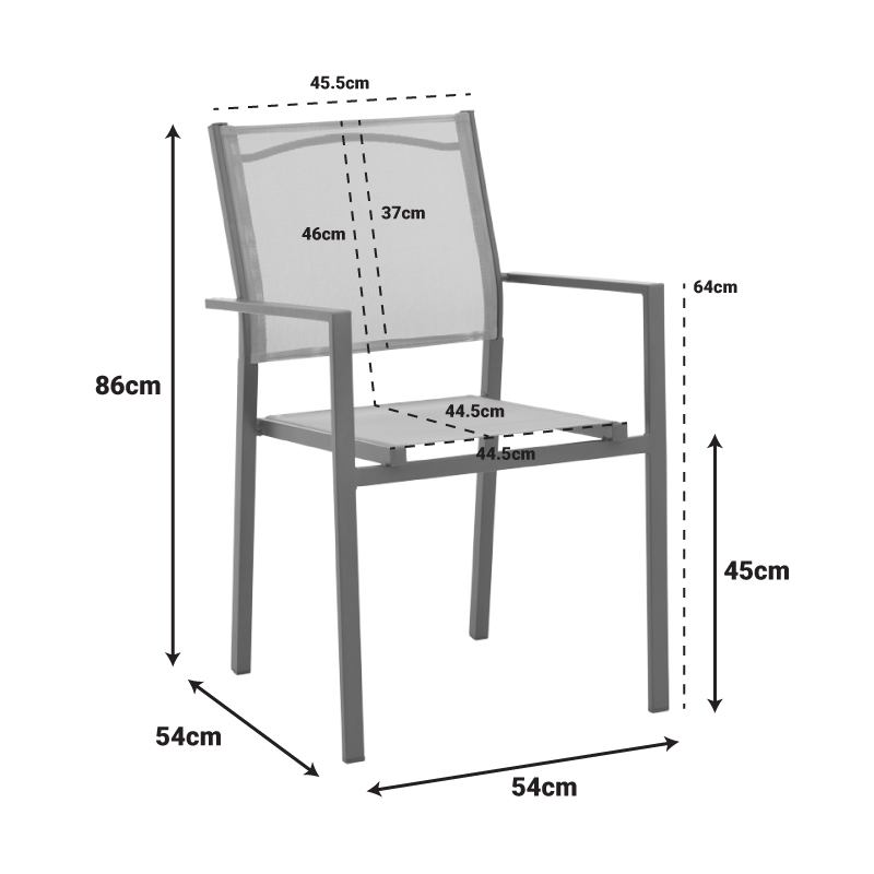 - Επένδυση καθίσματος με εξαιρετικής ποιότητας ύφασμα textilene. Το textilene είναι πλενόμενο και ανθεκτικό στις συνθήκες του εξωτερικού πέριβάλλοντος (ηλιακή ακτινοβολία, υγρασία).