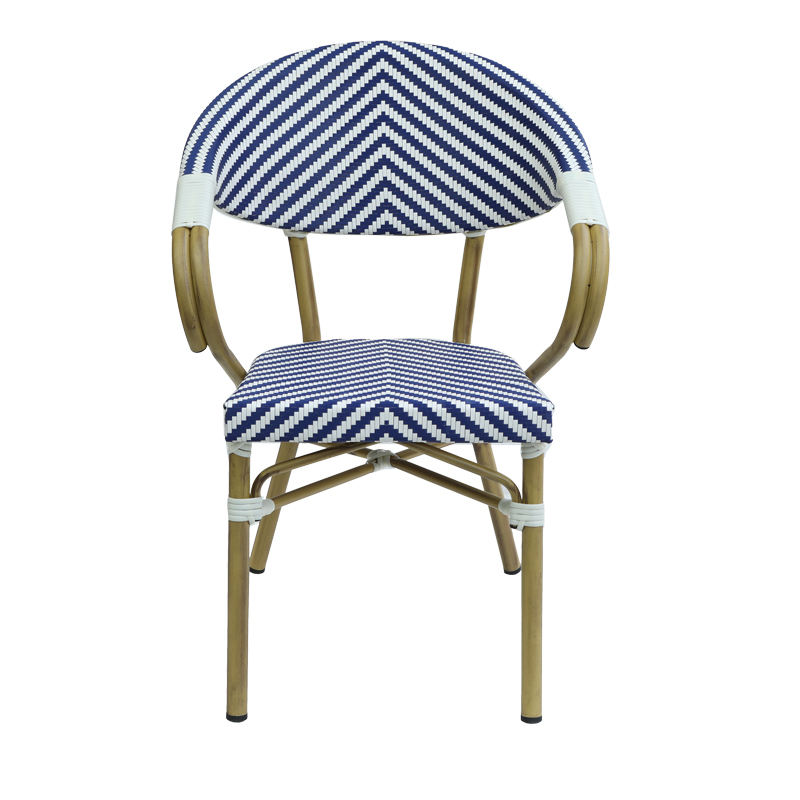 Πολυθρόνα Isaia pakoworld στοιβαζόμενη φυσικό αλουμίνιο-λευκό και μπλε textilene 57x57x83εκ