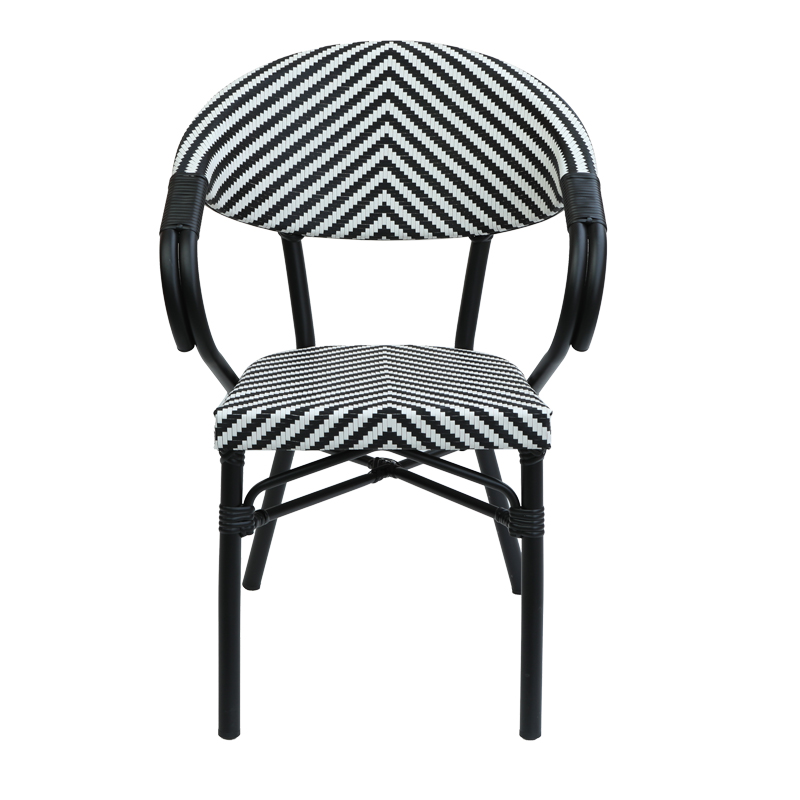 Πολυθρόνα Isaia pakoworld στοιβαζόμενη μαύρο αλουμίνιο-ασπρόμαυρο textilene 57x57x83εκ