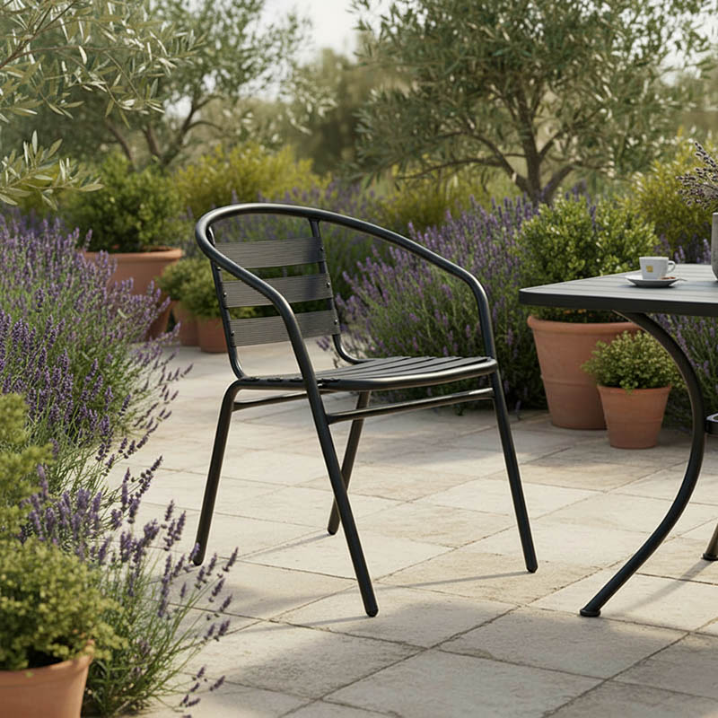Πολυθρόνα Tade pakoworld στοιβαζόμενη μέταλλο μαύρο 54x58x73εκ