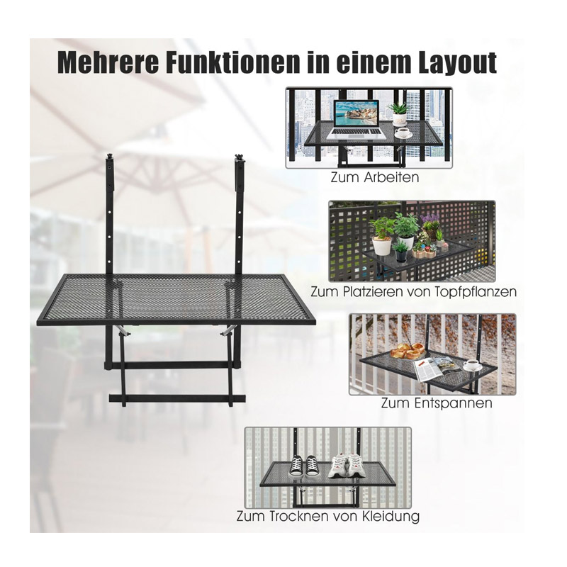 Το κρεμαστό τραπέζι μπαλκονιού, από την εταιρία Costway, μπορεί να χρησιμοποιηθεί σε εξωτερικούς χώρους ως εξαιρετικό μέρος για να τοποθετήσετε φυτά για να κάνετε την ιδιοκτησία σας να φαίνεται πιο ζωντανή. Από την άλλη πλευρά, μπορεί να χρησιμοποιηθεί ως κοινό τραπέζι γραφείο. Εξοικονομεί επίσης χώρο στο δάπεδο, ο οποίος είναι ιδανικός ειδικά για στενά μπαλκόνια.