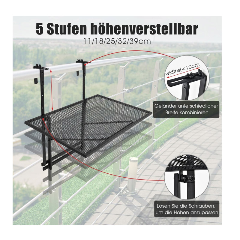 Πτυσσόμενο Σιδερένιο Κρεμαστό Τραπέζι Μπαλκονιού 60.5 x 48 x 61.5-82.5 cm Costway HW67242