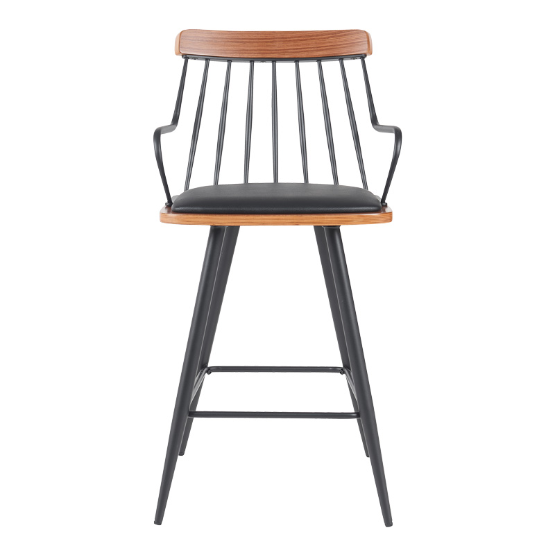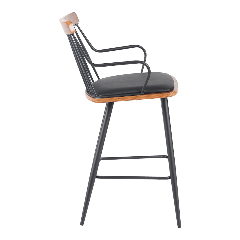 Σκαμπό μπαρ Posse pakoworld μέταλλο μαύρο-καρυδί ξύλο-μαύρο pu 48x54x92.5εκ