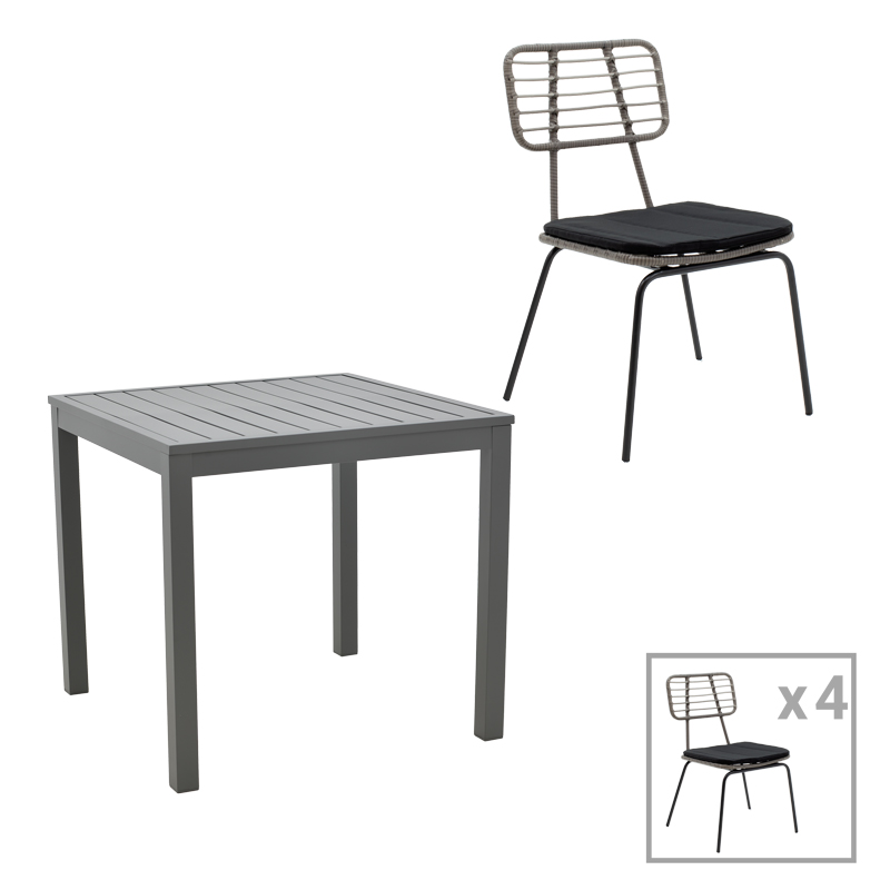 Τραπεζαρία Naoki - Kliton σετ 5τεμ pakoworld ανθρακί αλουμίνιο και μέταλλο σε μαύρη απόχρωση 80x80x74εκ