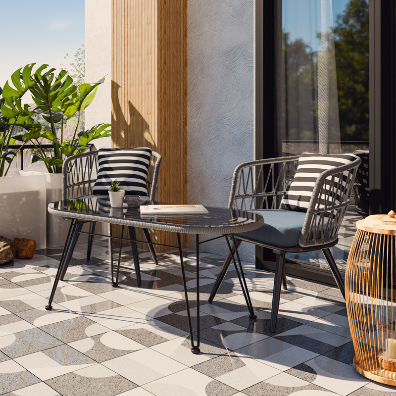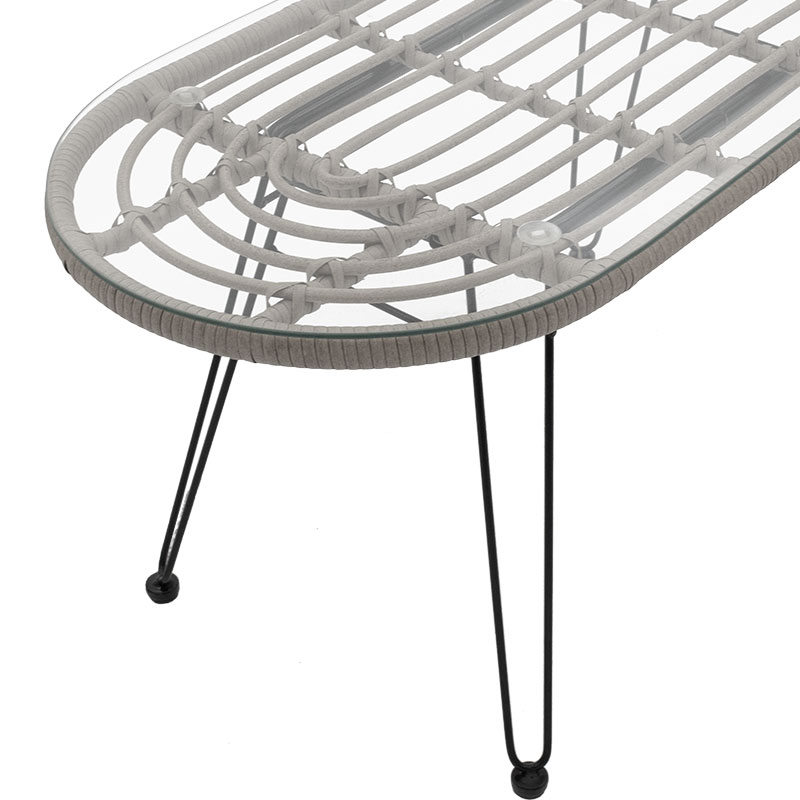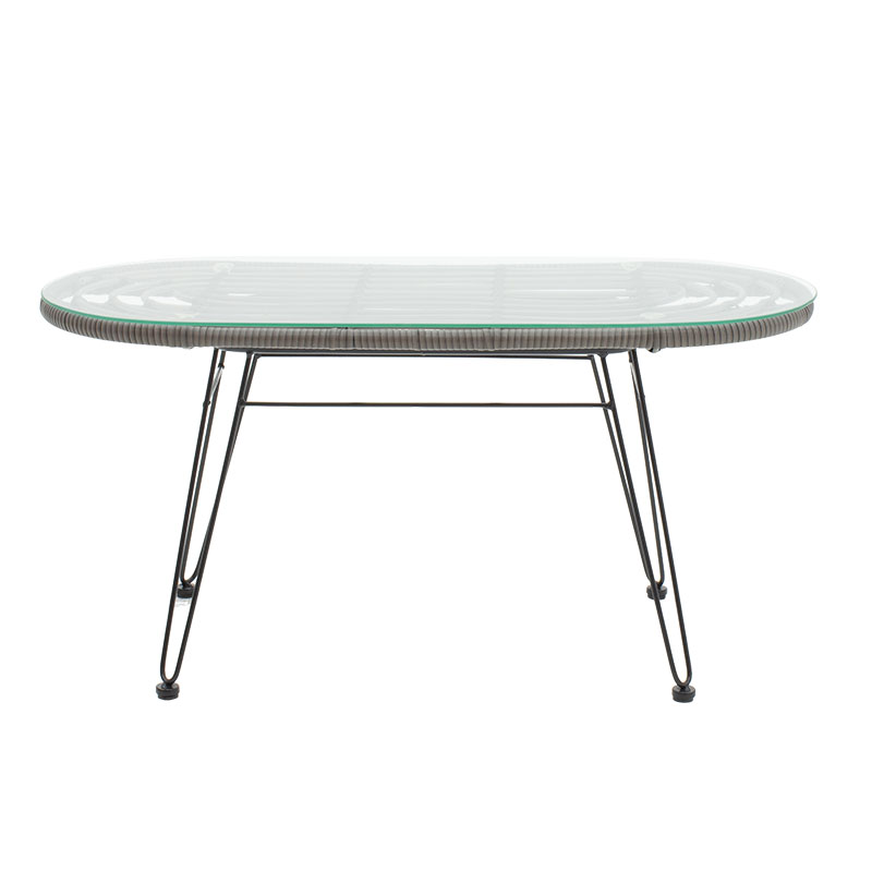 - Κυρίως επιφάνεια τραπεζιού από PE rattan. Το PE rattan είναι ένα είδος οικολογικού συνθετικού rattan, ανακυκλώσιμο και με μεγαλύτερη ανθεκτικότητα σε σχέση με τα άλλα είδη. Με στρογγυλές ακμές για την αποφυγή τραυματισμών.
