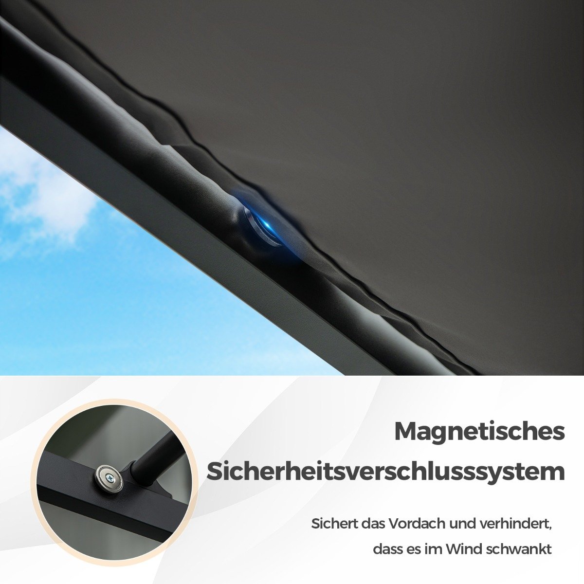Η εξωτερική μας πέργκολα προσφέρει επιφάνεια 9,5 m², ιδανική για υπαίθρια διασκέδαση με την οικογένεια και τους φίλους σας. Διαθέτει επεκτάσιμο θόλο που παρέχει ιδανική σκιά και προστασία από τις καιρικές συνθήκες. Ο θόλος είναι κατασκευασμένος από υψηλής ποιότητας πολυεστερικό ύφασμα, προσφέροντας αξιόπιστη προστασία από τα στοιχεία της φύσης. Χάρη στις παχιές υποστηρικτικές κολώνες και τις 4 ενισχυμένες γωνιακές πλάκες, αυτό το κιόσκι προσφέρει απαράμιλλη αντοχή και σταθερότητα. Με την μοναδική και κομψή εμφάνισή του, προσθέτει γοητεία και στυλ στον εξωτερικό σας χώρο.