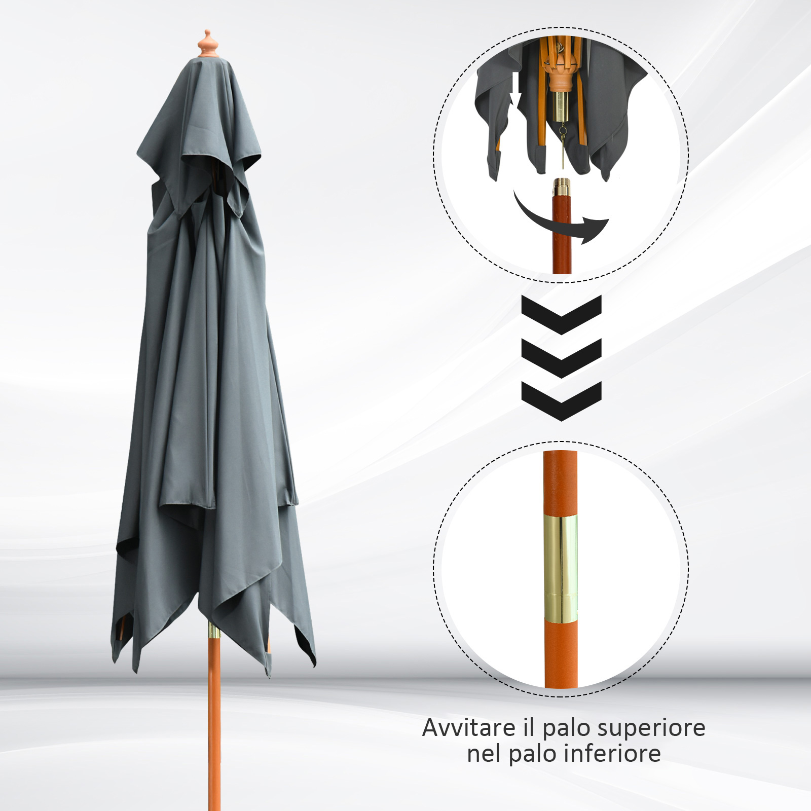 Ομπρέλα Outsunny Garden 3x3m με 8 μπαστούνια μπαμπού και κάλυμμα αντηλιακού 2 επιπέδων, γκρι 840-026CG