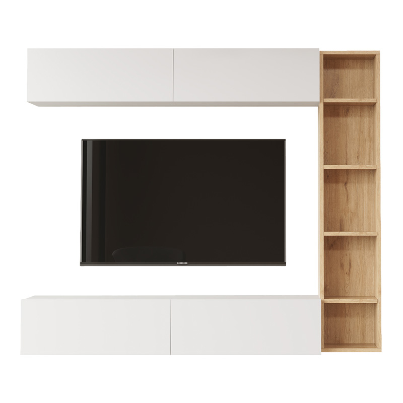 Σύνθετο σαλονιού Compo επιτοίχιο pakoworld σε oak-λευκό απόχρωση 169,10x25,8x143.5εκ