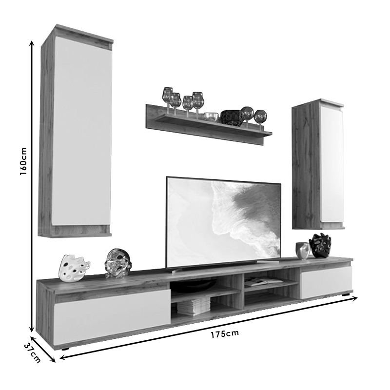 Σύνθετο σαλονιού Sandro pakoworld καρυδί-λευκό 175x37x160εκ