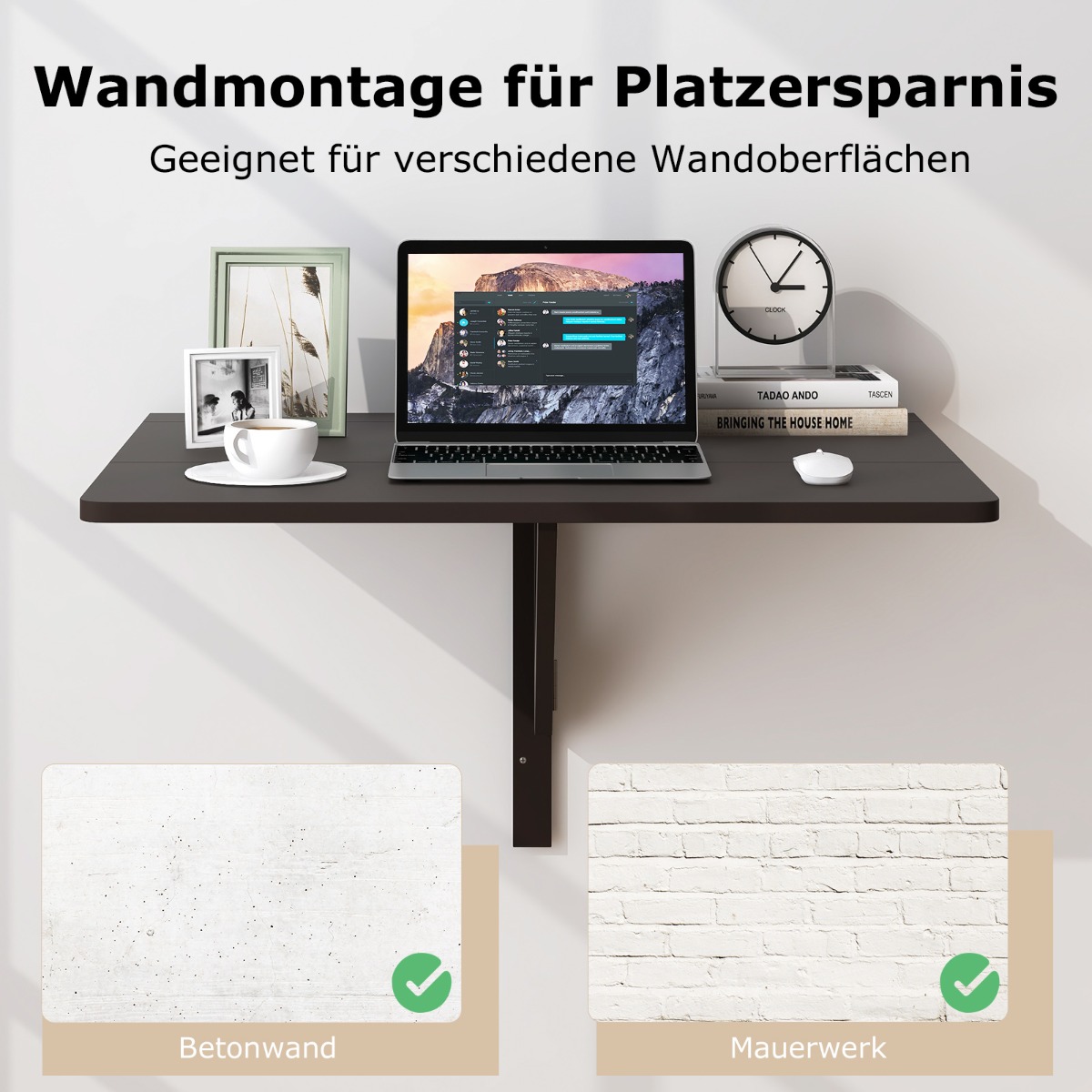 - Καθολική συμβατότητα: Αυτό το πτυσσόμενο τραπέζι τοίχου έχει σχεδιαστεί για να ενσωματώνεται απρόσκοπτα σε οποιοδήποτε περιβάλλον και είναι κατάλληλο για διάφορες επιφάνειες τοίχου, όπως τοίχους από σκυρόδεμα και τούβλα. Απολαύστε την άνεση ενός ευέλικτου και προσαρμόσιμου χώρου εργασίας.