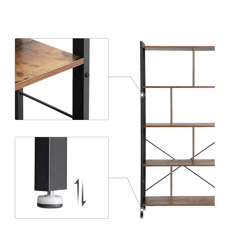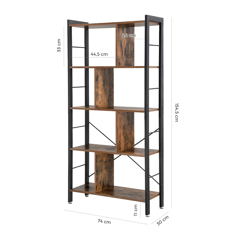 Η βιβλιοθήκη, από την εταιρία VASAGLE, έχει βιομηχανικό σχεδιασμό και διαθέτει στιβαρό μεταλλικό πλαίσιο και 4 ράφια από υψηλής αντοχής μοριοσανίδα σε καφέ ρουστίκ χρώμα, για μακροχρόνια χρήση. Διαθέτει προστατευτικά καλύμματα στα πόδια που προστατεύουν το πάτωμά σας από τις γρατζουνιές ενώ βελτιώνουν τη συνολική σταθερότητα της σε ανώμαλη επιφάνεια.